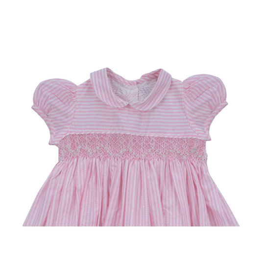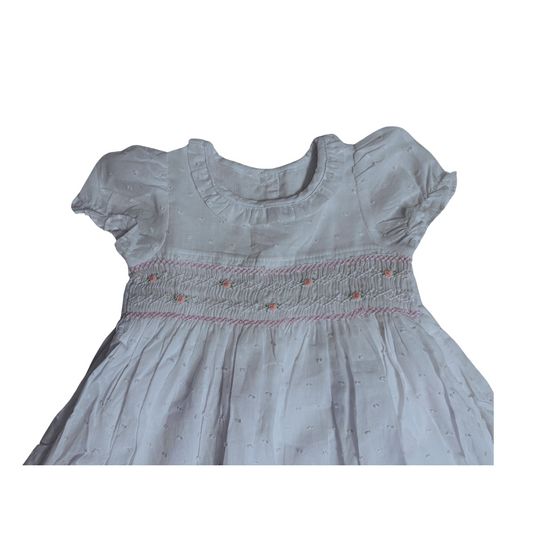 Timeless Whites - White Hand Smocked Dress With Pink Details
