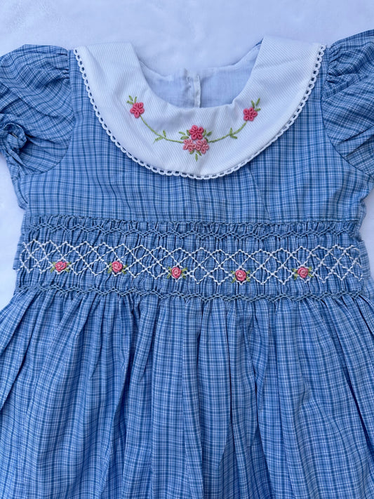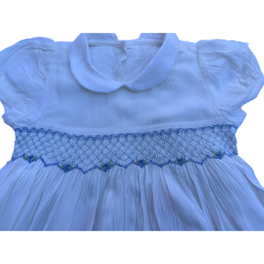 Timeless Whites - White Hand Smocked Dress With Blue Details